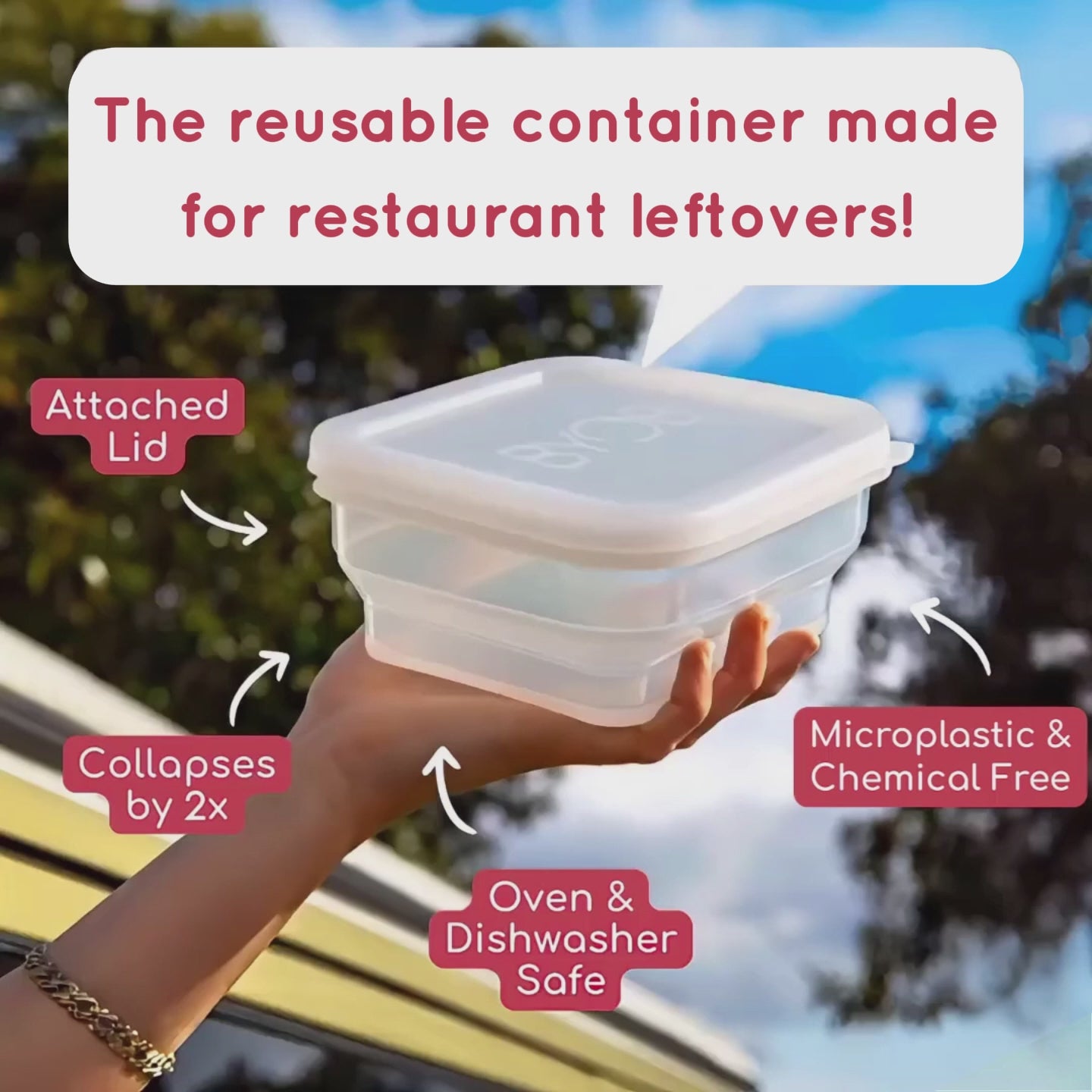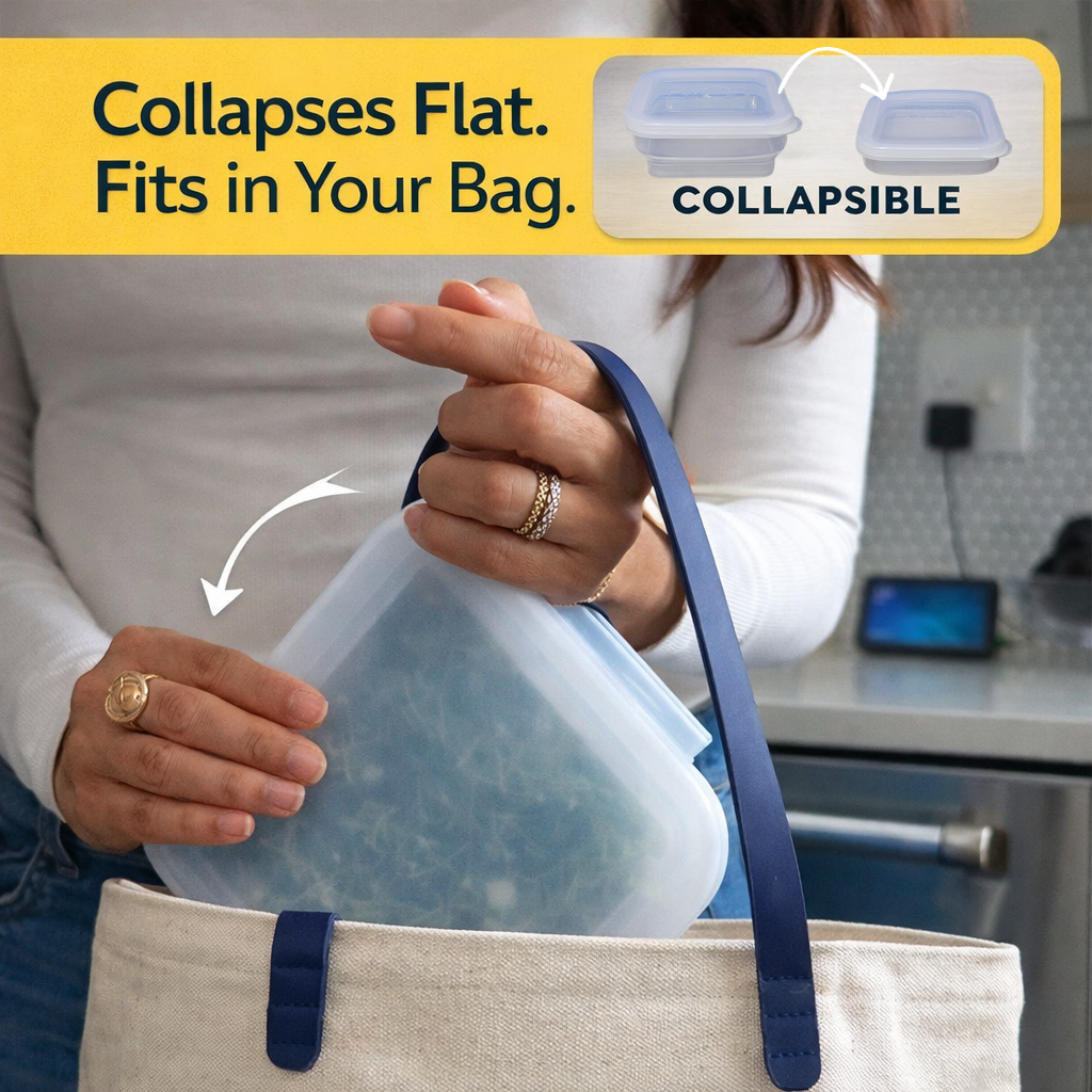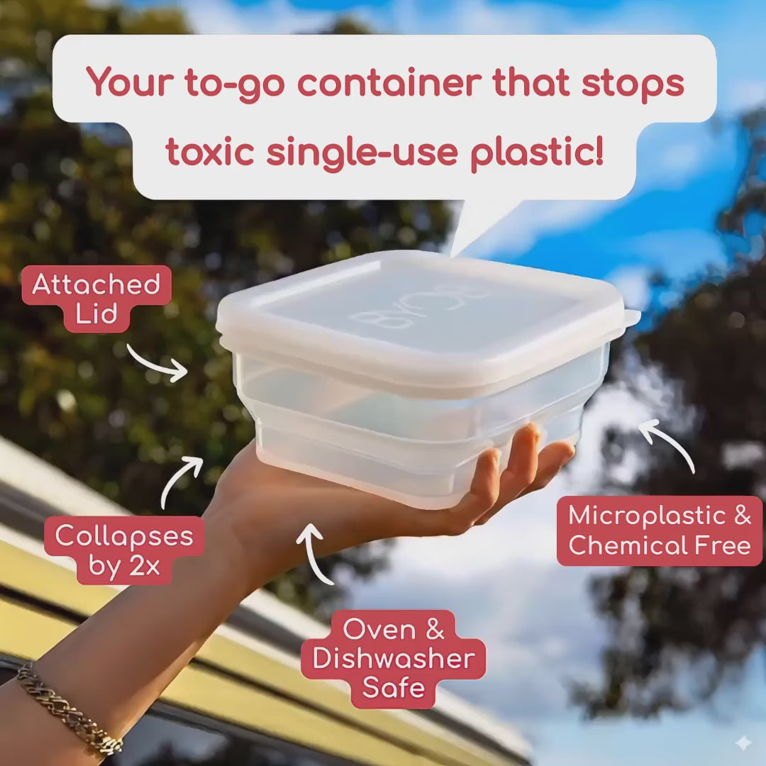 Collapsible Container Reusable, Plastic-Free & Oven Safe.