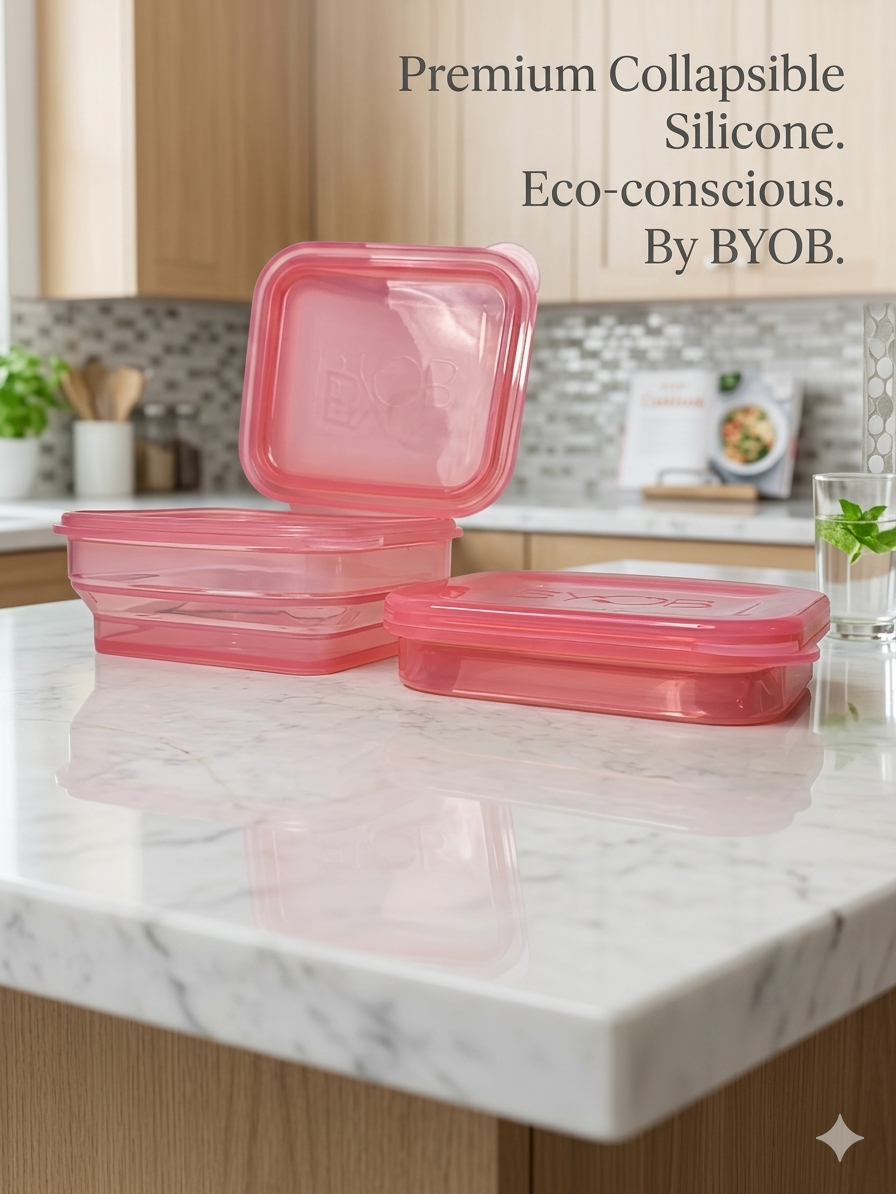 "I launched BYOB after a moment at dinner when the plastic takeout box in my hands felt like a compromise on everything I believed in. I wanted something real elegant, practical, non-toxic, collapsible so that doing the right thing didnβt feel like a sacrifice. My hope is that BYOB becomes as automatic as a reusable bag: a small act that speaks volumes about who we are and what we want the world to be"