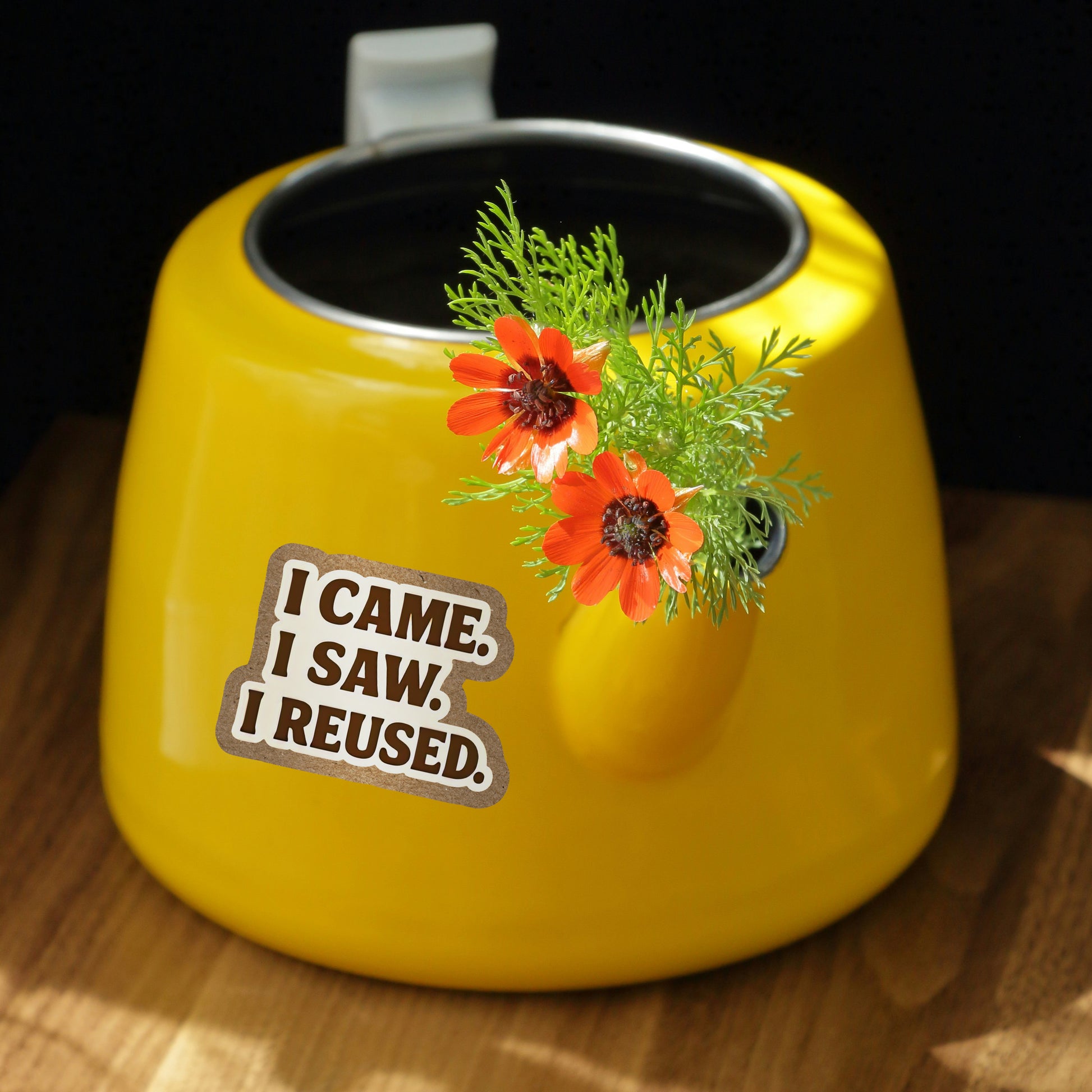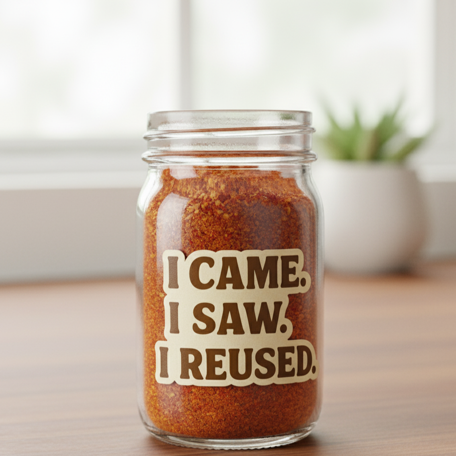 Julius Caesar conquered empires. You conquer clutter—one reusable at a time. This bold little sticker is for the warriors of waste reduction. Stick it. Reuse it. Rule the world.