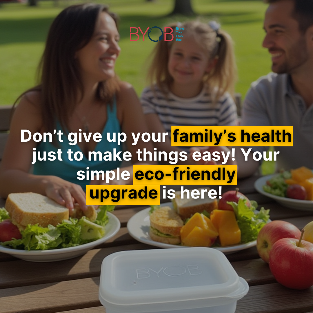 Every time we get takeout food, it usually comes in a plastic box that gets thrown away after one use. BYOB is different - it’s a reusable container that you can wash and bring back again and again. By using one BYOB instead of hundreds of throwaway boxes, we keep a lot of plastic out of the trash and help protect the Earth.