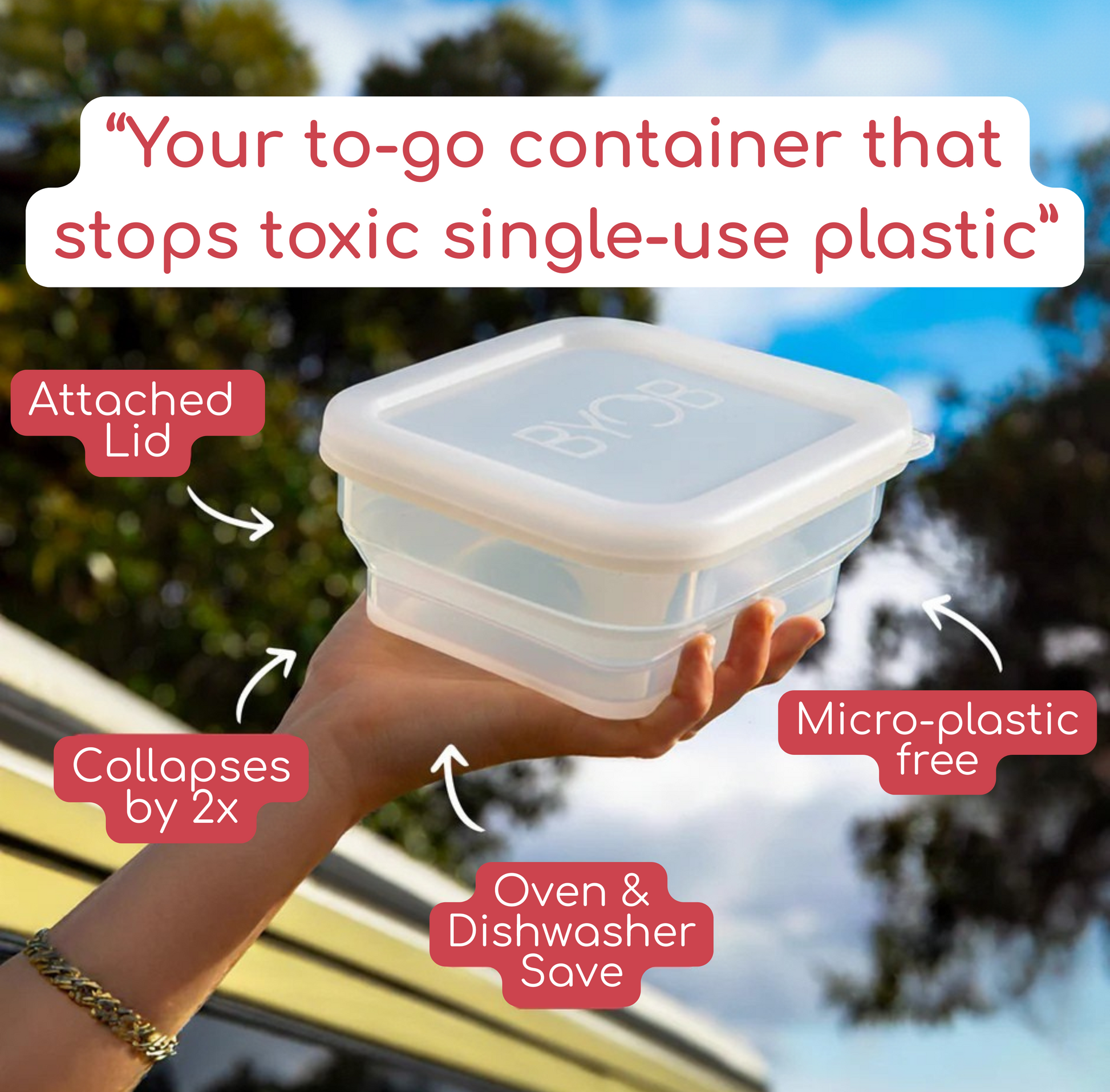 "I launched BYOB after a moment at dinner when the plastic takeout box in my hands felt like a compromise on everything I believed in. I wanted something real elegant, practical, non-toxic, collapsible so that doing the right thing didn’t feel like a sacrifice. My hope is that BYOB becomes as automatic as a reusable bag: a small act that speaks volumes about who we are and what we want the world to be"